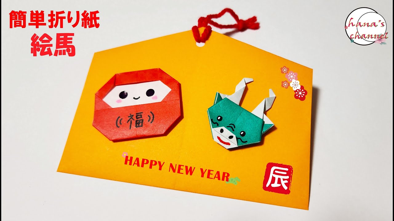 折り紙 オリジナル 絵馬 龍 正月 origami 1枚 - YouTube。