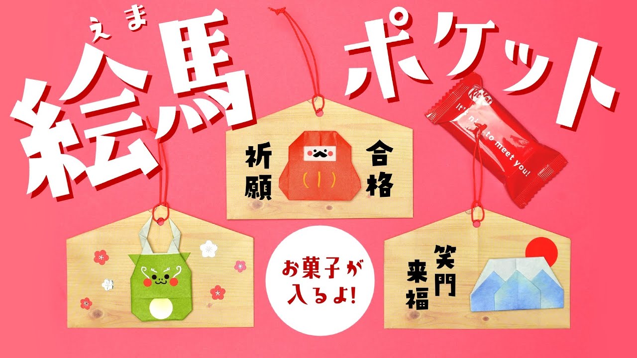 折り紙で簡単!お菓子やお年玉が入るポチ袋絵馬の作り方* How to fold a Gift Envelope Ema。