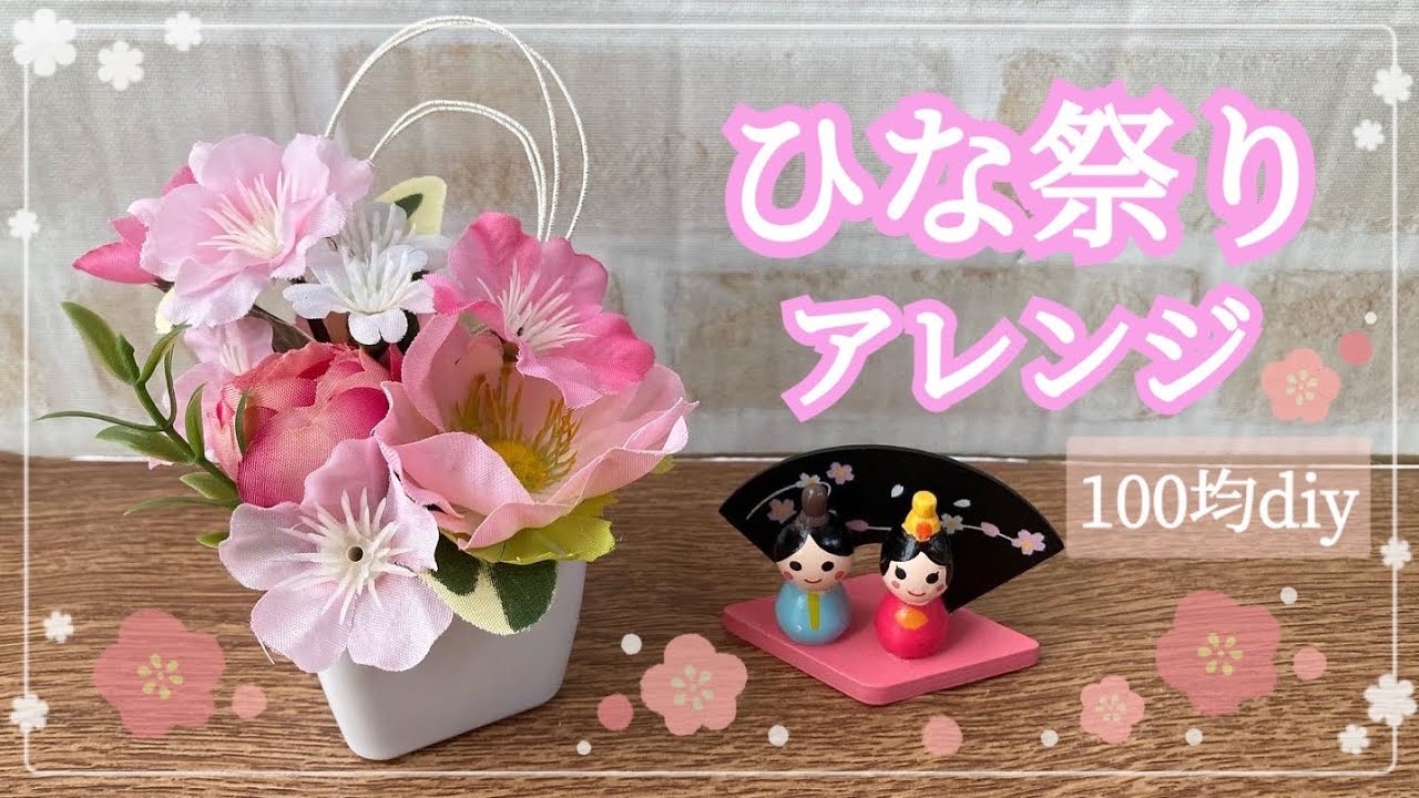 ひな祭り アレンジメント 造花❣️めーちゃん❣️2つセット‼️ 100均造花 ひな祭りアレンジの作り方 花材費800円 - YouTube。