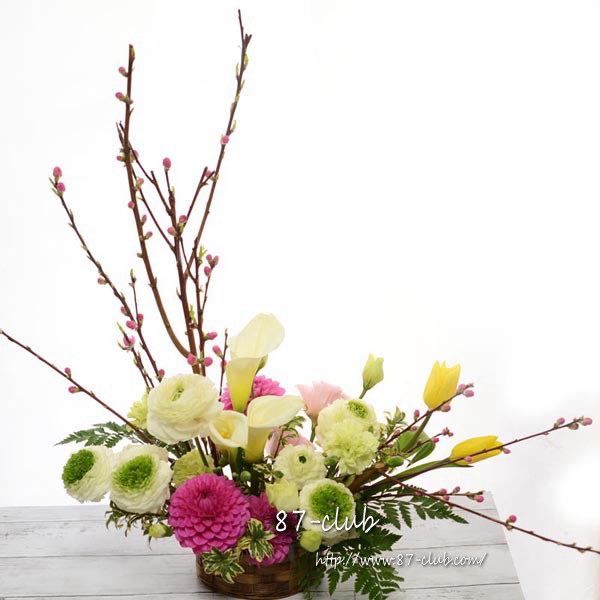 桃の花を入れたひなまつりスタイリッシュアレンジメント商品詳細。