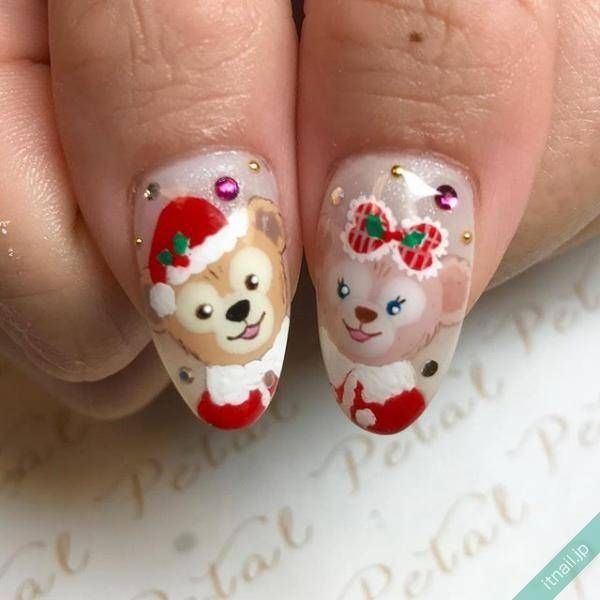 ダッフィーとシェリーメイのディズニークリスマスネイルデザイン 2104 流行 冬 トレンド 結晶 ツリー キラキラ厳選♡流行のジェルネイルデザイン。