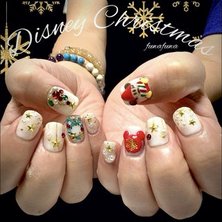 🎄🎄🎄❤️ Xmasネイル✨ 今年のディズニーXmasのリルリンリン✨ はホワイトモチーフでめちゃんこ可愛いんです🤤 ディズニーに行かれるお客様 ネイル❤️ 羨ましい〜いいなぁ〜いいなぁ〜🤤 ランドで沢山可愛い〜って言われるに違いないですね❤️ 沢山楽しんでください。