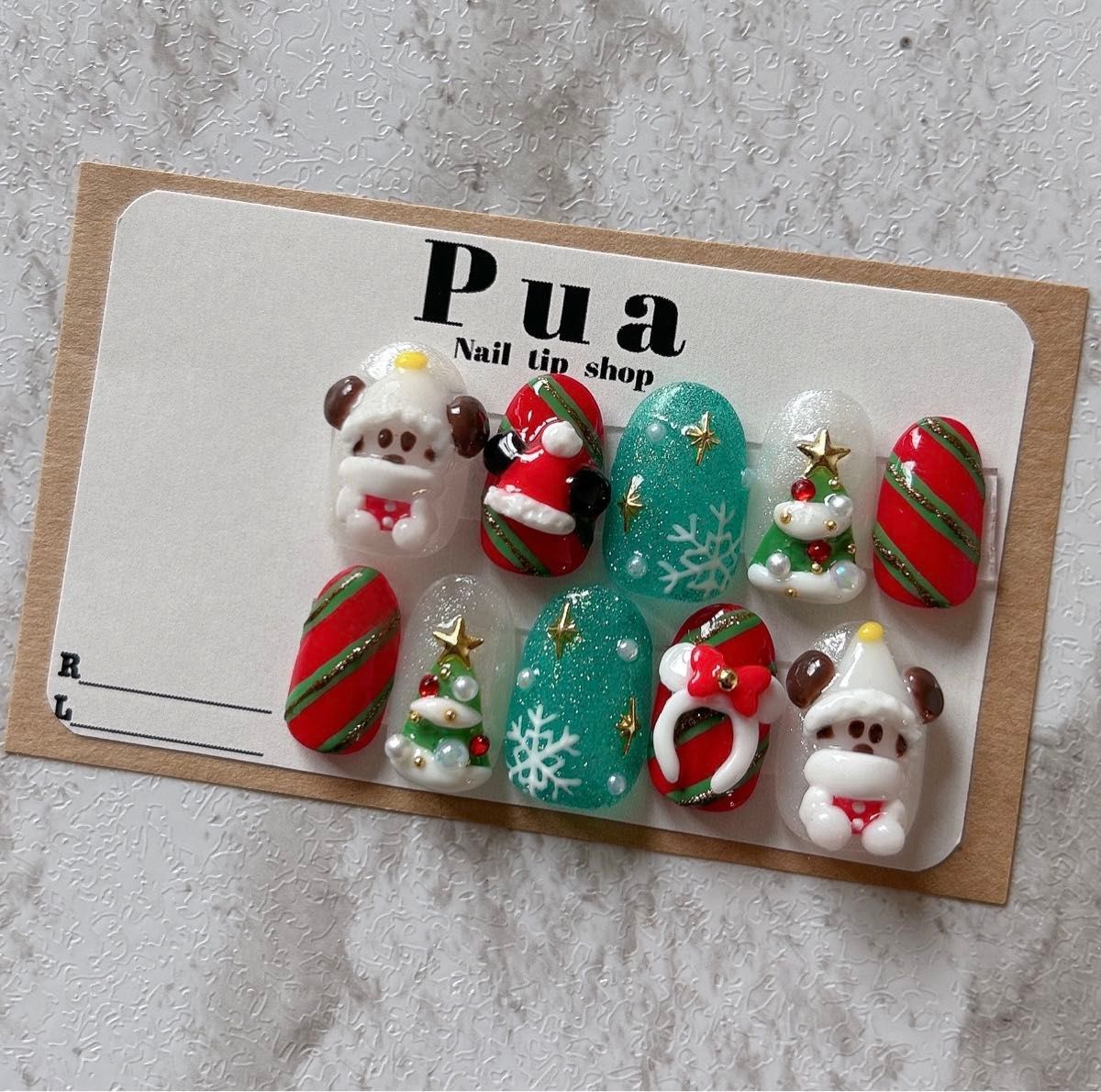 ディズニークリスマスネイル🎄ミッキーミッキーマウスミッキーネイルミニーミニーマウスミニーネイルディズニー ディズニーネイルディズニーネイルデザインプルートプルートネイルクリスマスネイル3dネイル痛ネイル東京ディズニーランド。