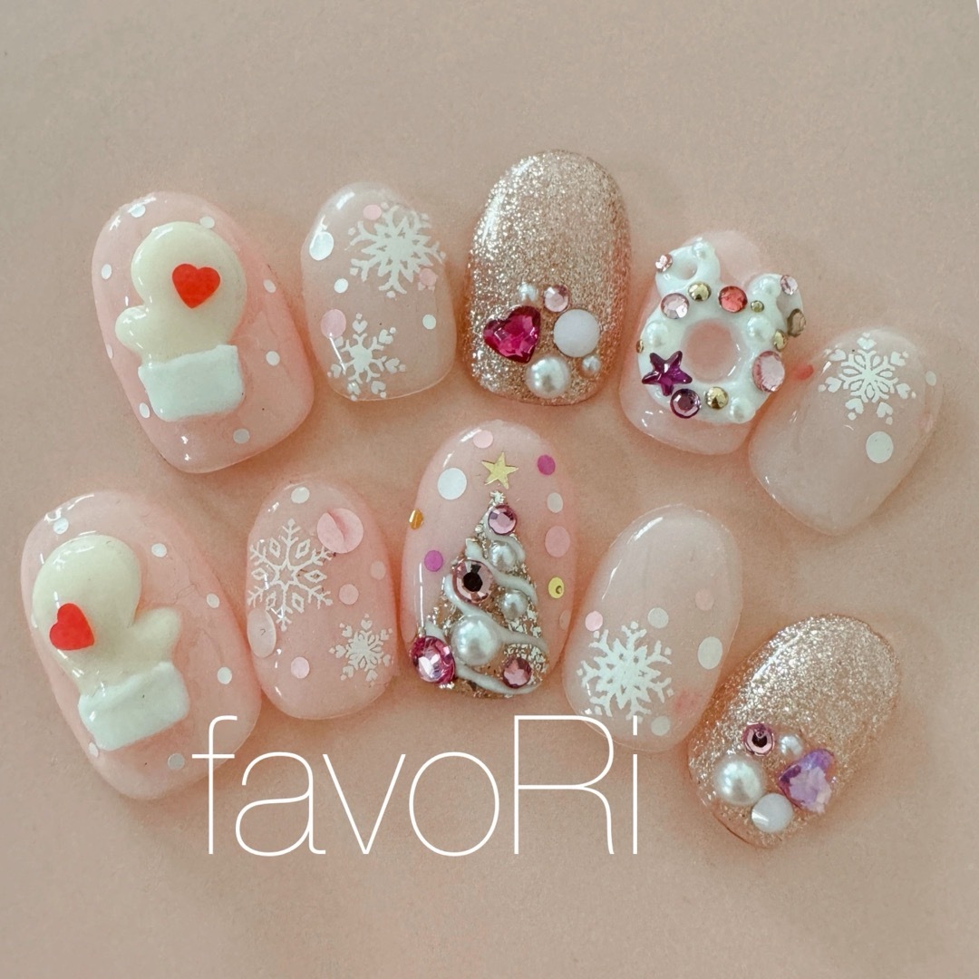 表参道・新橋・白山にあるネイルサロンf'bloom エフブルームディズニークリスマスネイル☆。