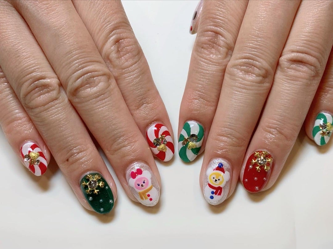 冬 クリスマス ハンド キャラクター ミディアム - メロウのネイルデザイン No.4862520 ネイルブック。