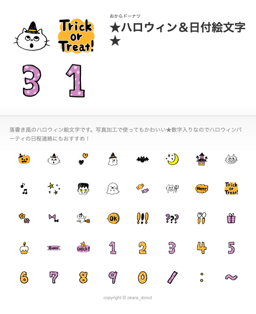 くっきりかわいい♥ハロウィン絵文字のLINE絵文字画像、情報など。