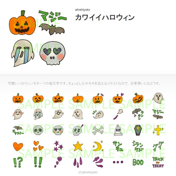 ハロウィンのいろんな絵文字」を販売しました - お絵かきといろいろ。