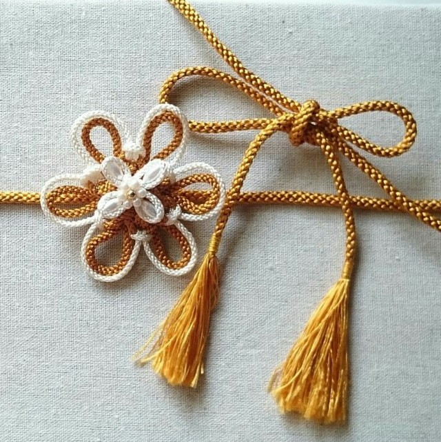 浴衣 飾り紐の結び方 かわいいお花の形に: YUKATA 辻が花。