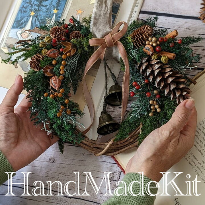 楽天市場 クリスマスリース 手作りキットカントリーテイストちょっと大人の色味を抑えたウィング型クリスマスリースクリスマス リース 玄関 材料おしゃれ ドライフラワー ハンドメイド クリスマスデコレーション 壁飾り クリスマスベル付き : Coppe Craft Workshop。