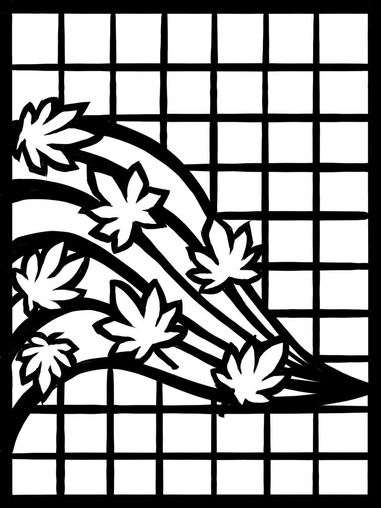 無料の切り絵の図案 下絵 -秋編 コスモス・もみじ等。