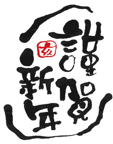 年賀状素材☆謹賀新年☆筆文字☆:イラスト無料。