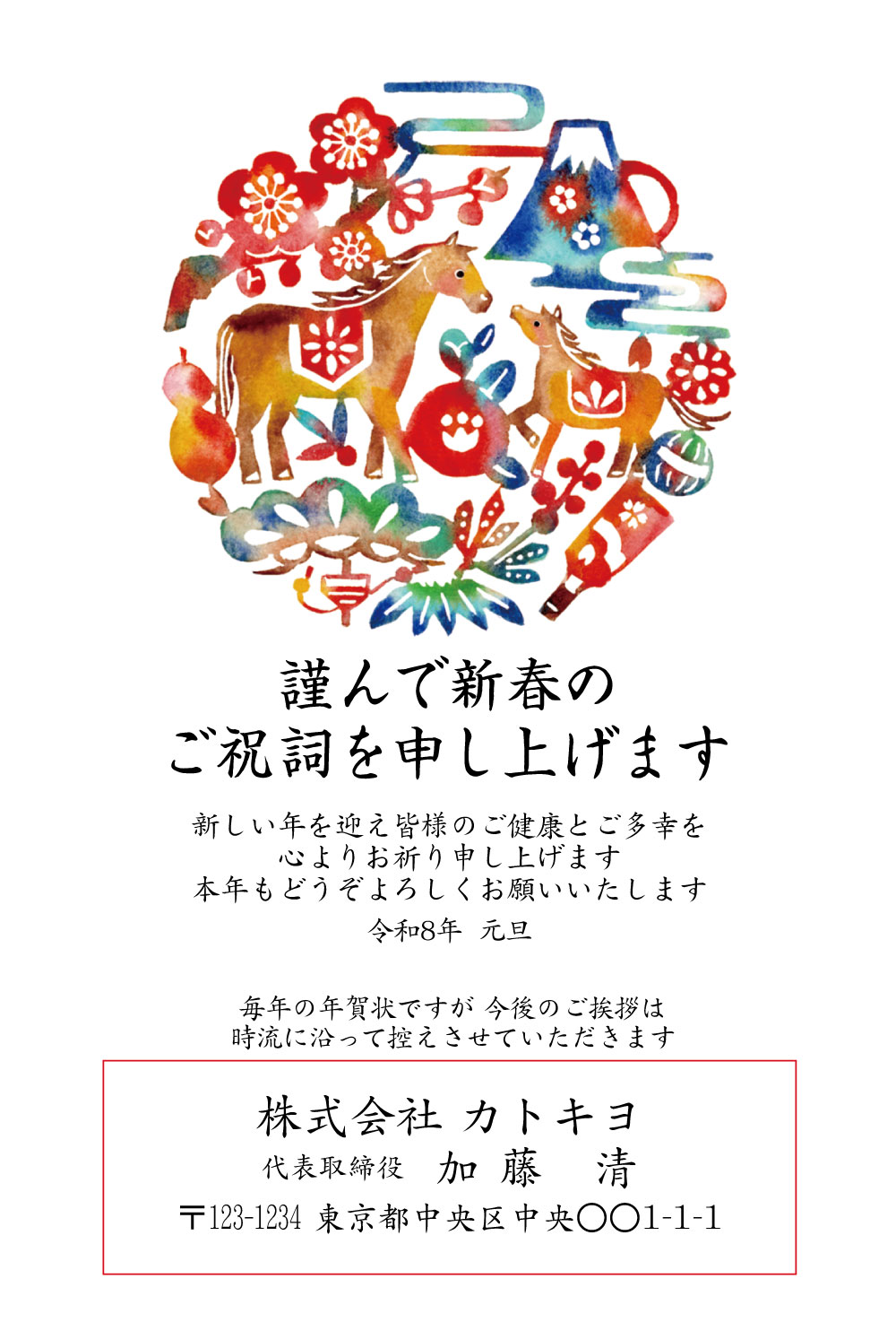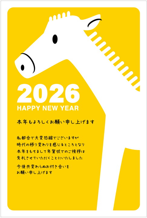 年賀状じまい ハガキ 10枚 お年玉付き年賀はがき 2026 馬 アルファプリントサービス公式 SN215 おしゃれ 終活年賀状。