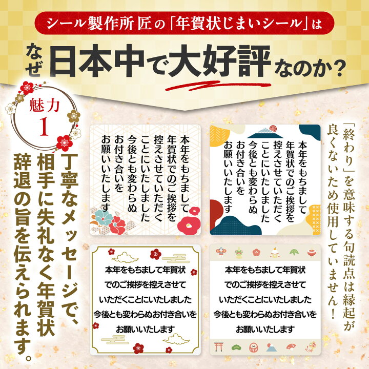 楽天市場 年賀状じまい シール 61枚 37枚 年賀状しまい 選べる 文面 書体 印刷 挨拶 やめる おしゃれ 2026 注文 お手軽 簡単 シンプル最後 文章 1000円ポッキリ 送料無料 ハガキ ステッカー 年賀はがき 葉書 実用的 終活 2026年 令和8年 あいさつ文 個人 一般。