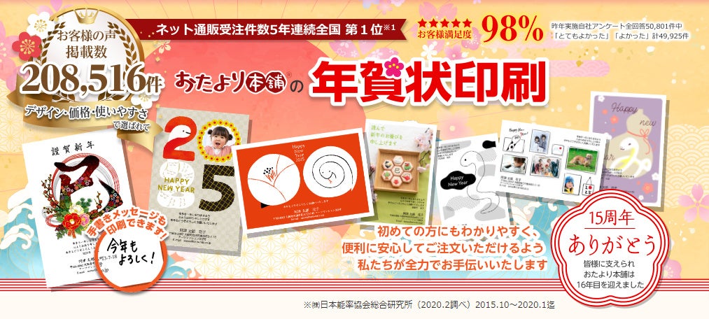 おたより本舗の年賀状2025年 約850種類以上のデザイン!文例は年賀状じまい含む140種類! - 提携メディア。