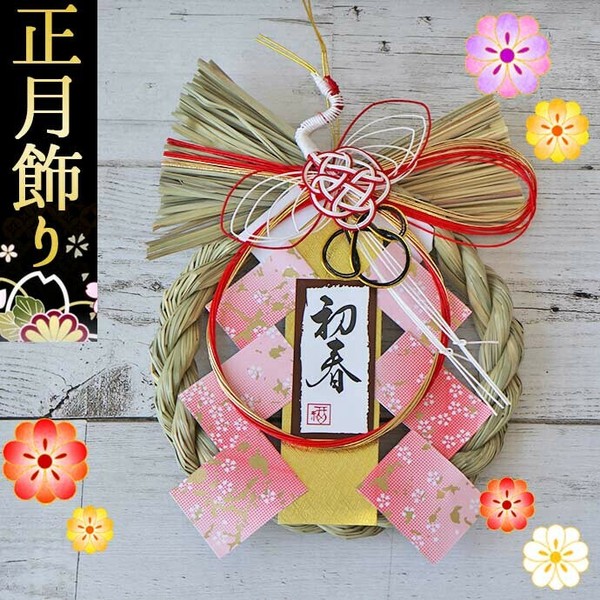 2025年 mamawreath お正月飾り お正月リース しめ飾り 玄関飾り 正月飾り Sサイズ 約16cm直径 × 約6cm厚みピンクお正月リース迎春WR-59-Bお正月 玄関飾り リース 迎春 正月飾り 玄関 モダン しめ縄飾り しめ飾り リース シンプル 大きめ31×25cm しめ縄。