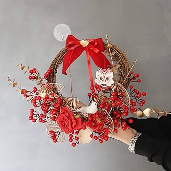 Amazon.co.jp: 正月飾り リース 玄関飾り 正月リース 手作り 開運飾り 玄関 リース インテリア 玄関 ディスプレイ 正月 お正月飾り店舗 お店 商用 玄関 謹賀新年 迎春 新春 飾り おしゃれ : おもちゃ。