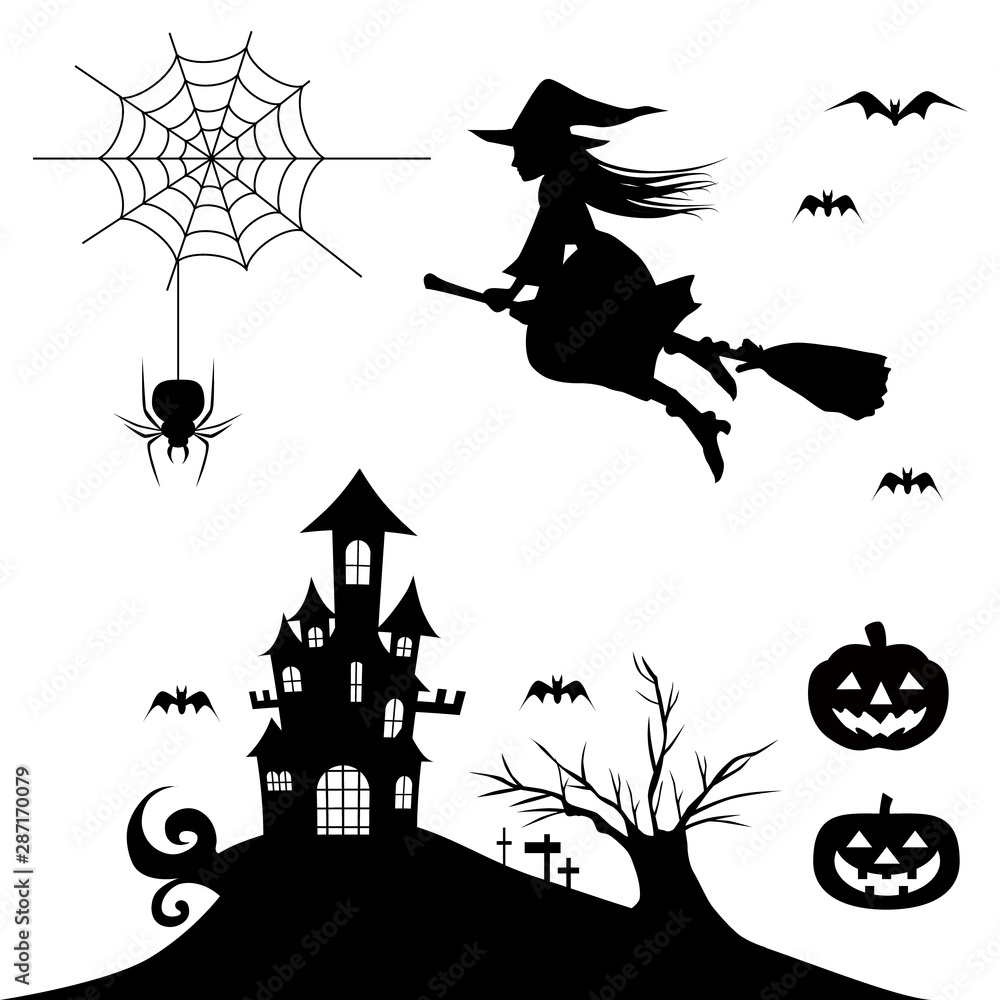 ハロウィンイラスト お化け屋敷 コウモリ クモとクモの巣 お化けかぼちゃ お墓 イラスト素材7151937- フォトライブラリ。