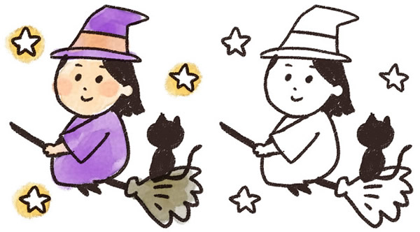 かぼちゃ 魔女 黒猫 お化け屋敷 ハロウィン手書き 手描き イラスト無料素材 - フリーランスWebデザイナーのリアル。