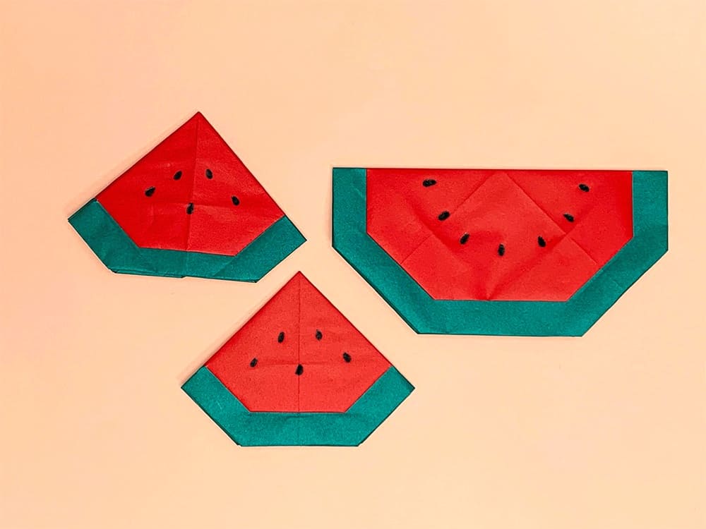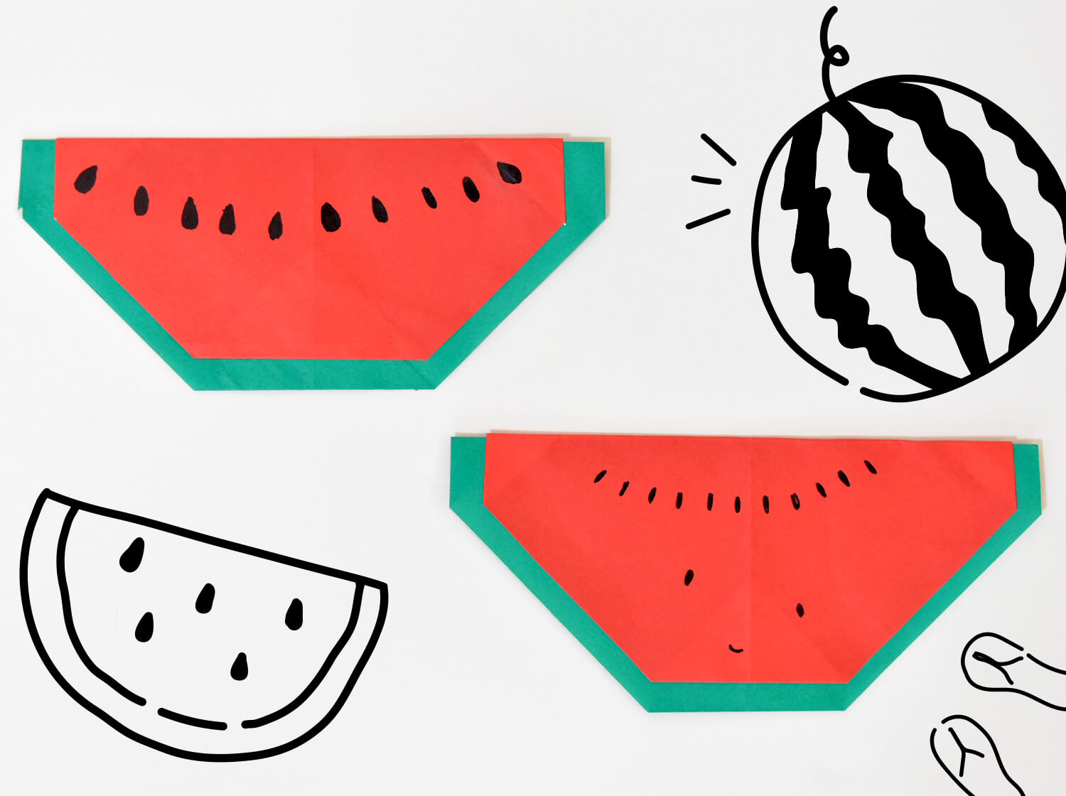 折り紙「スイカ」1番簡単な折り方ー3歳児頃からおすすめ◎夏の製作。