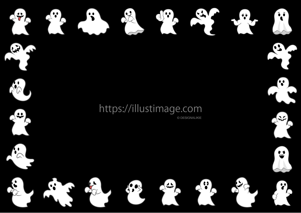 黒背景のオバケ枠イラストのフリー素材イラストイメージ。