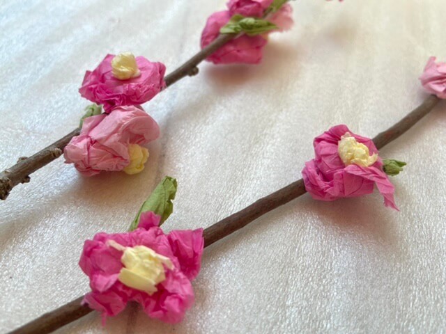 桃の花 桜の花 製作ー本物みたい!お花紙と自然物を使ったひな祭り製作。