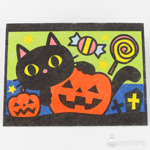 剥がして載せる かんたんすな絵シリーズハロウィン ねこ 簡単砂絵砂絵工作, 500円以下の工作, 作って飾れる工作, そのまま作れる工作イベント工作キットの「たのつく」。