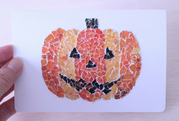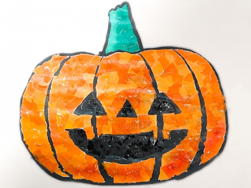 Halloween ちぎり絵で作るハロウィンパンプキン。