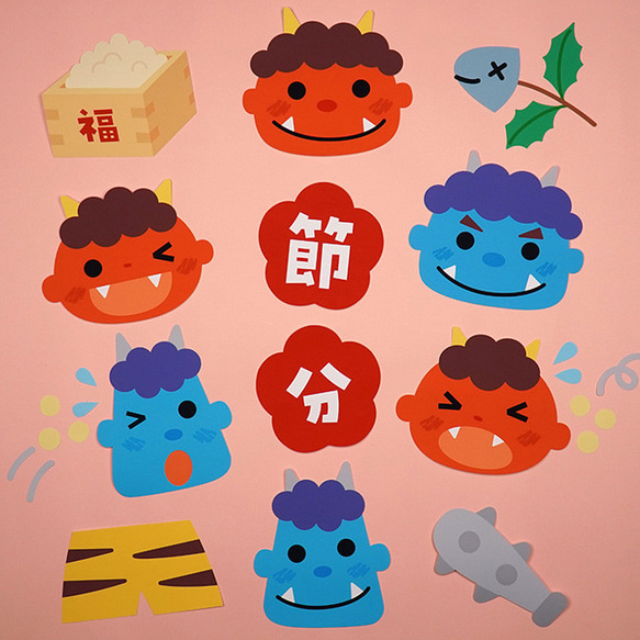 壁面飾り工房 「節分壁面飾りまとめ」 春 冬 節分 介護施設 デイサービス 老人ホーム 幼稚園 保育園 学校 壁面飾り工房本店 壁面装飾・パネルシアター・ペープサート・型紙・知育・保育・介護商品の販売介護 壁面飾り。