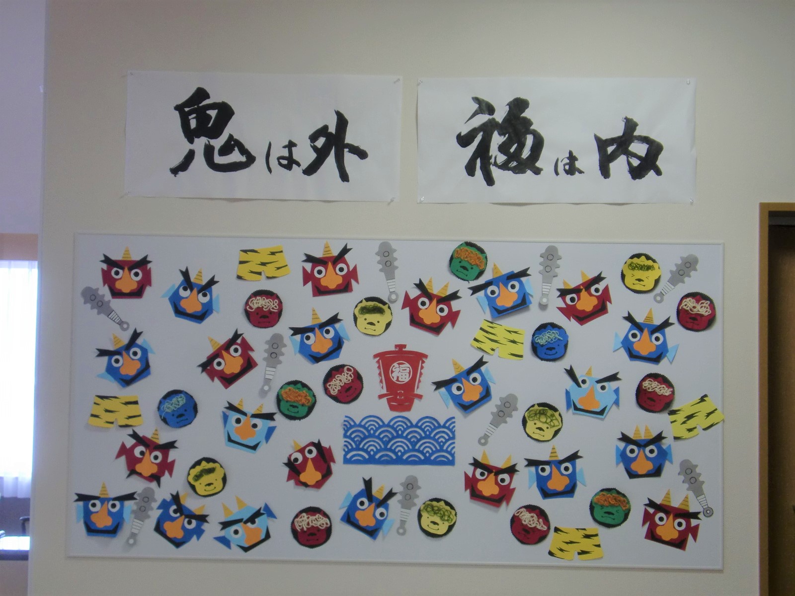 2月節分イベント 節分壁面制作 のご報告 – デイサービス ロ・スカーロあおまだにブログ – 医療法人 神明会。