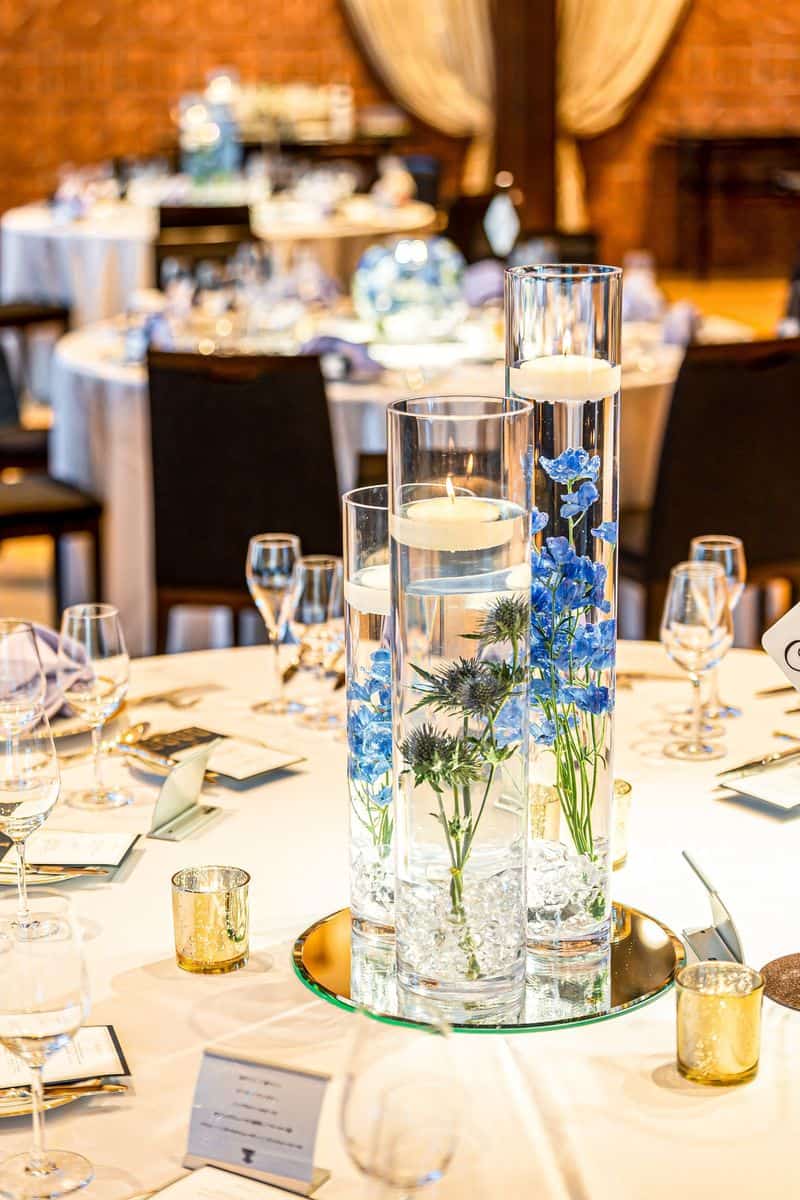 夏婚装花水の透明感を活かして涼し気に。テーブル装花アレンジ実例ARCH DAYS。