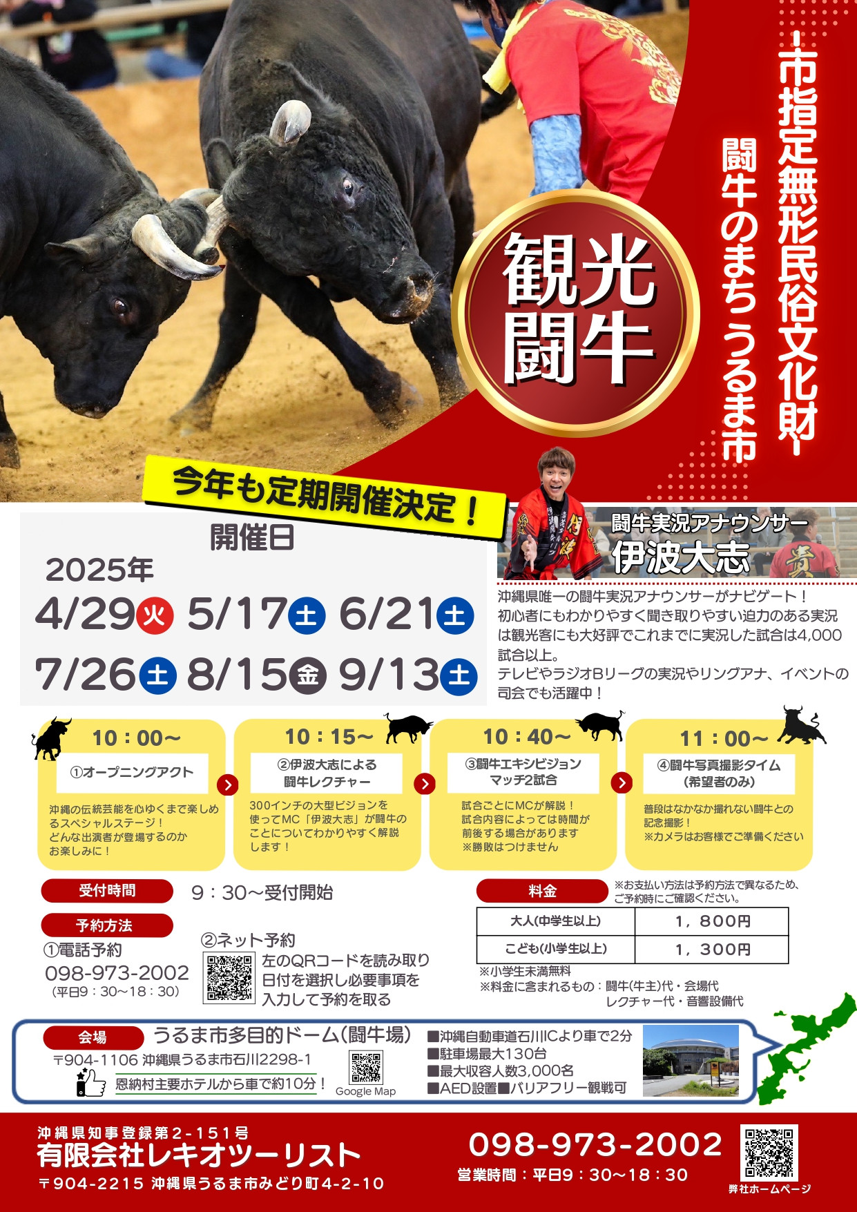 観光闘牛プラン有限会社レキオツーリスト沖縄から県内・国内・海外旅行をするならお任せください。