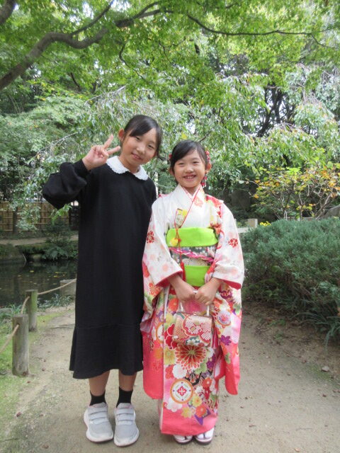 七五三詣 しちごさんもうで福岡市博多区の日本庭園 楽水園。