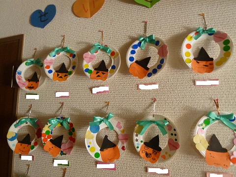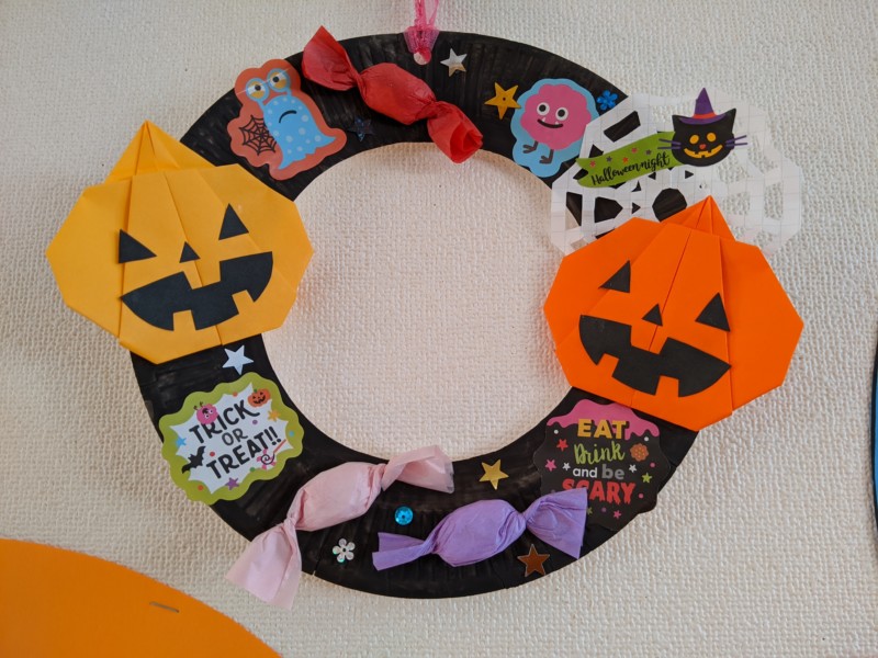 紙皿で作るハロウィンリースの壁面飾り保育園の製作活動男性保育士あつみ先生の保育日誌 おすすめ絵本と制作アイデア。