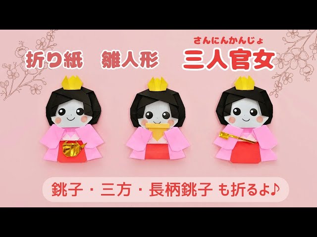 折り紙 ひな祭り 三人官女の折り方How To Make Origami Three Court Ladies. - YouTube。