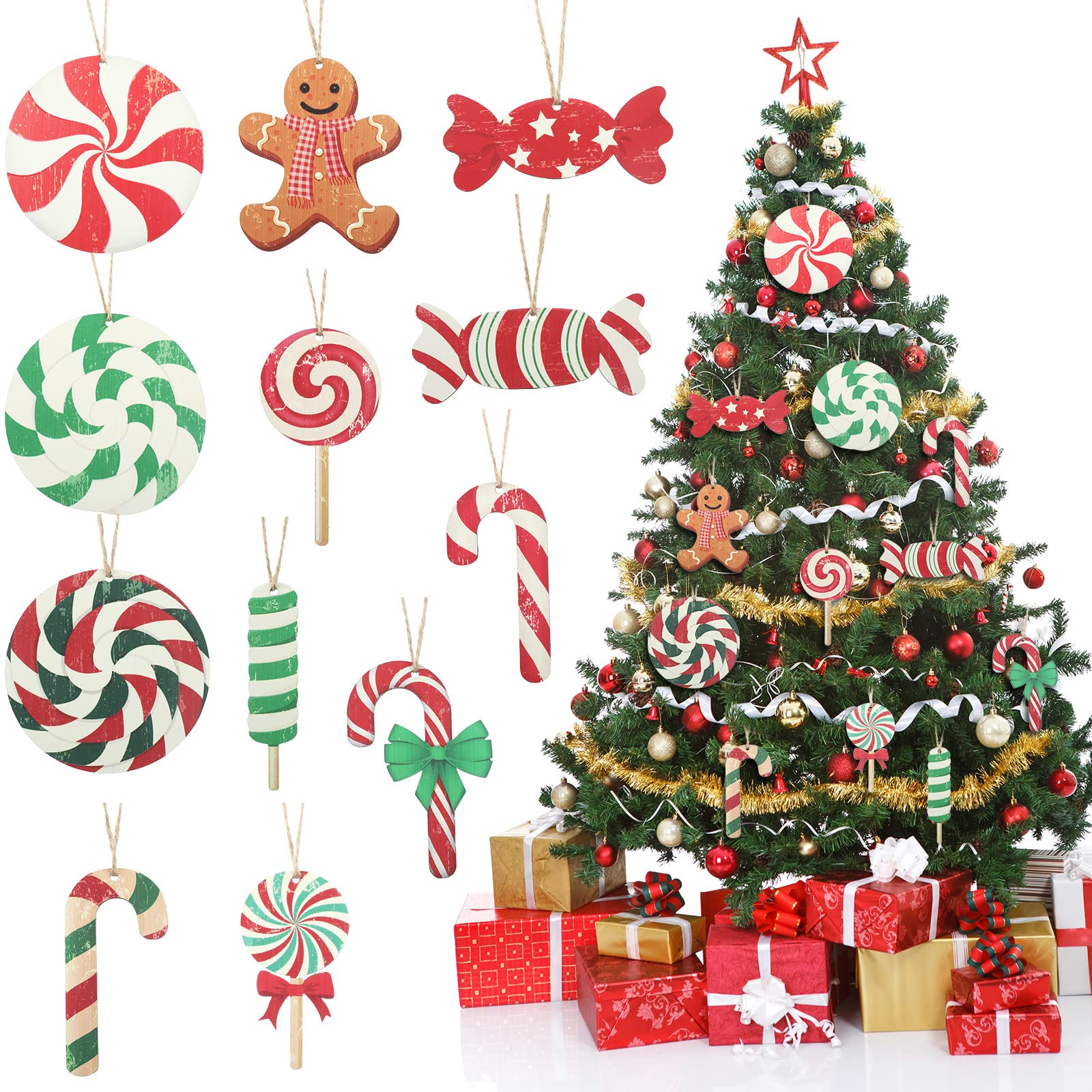 Amazon.co.jp: クリスマスツリーキャンディケーンオーナメント クリスマス木製ハンギングペパーミントキャンディ渦巻きオーナメント ロリポップキャンディケーンクリスマスツリーパーティーデコレーション用素朴なスタイル36個 : おもちゃ。