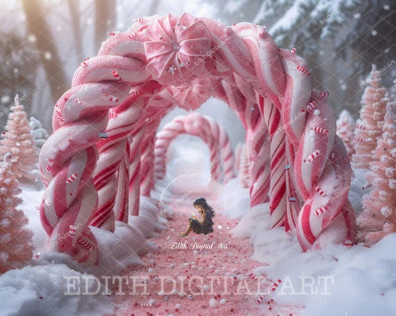ピンクのクリスマス キャンディケーン アーチ、ボケ、キャンディの小道、ファンタジー背景、クリスマスの背景写真、子供、家族、ペット。+ 雪のオーバーレイ- Etsy 日本。