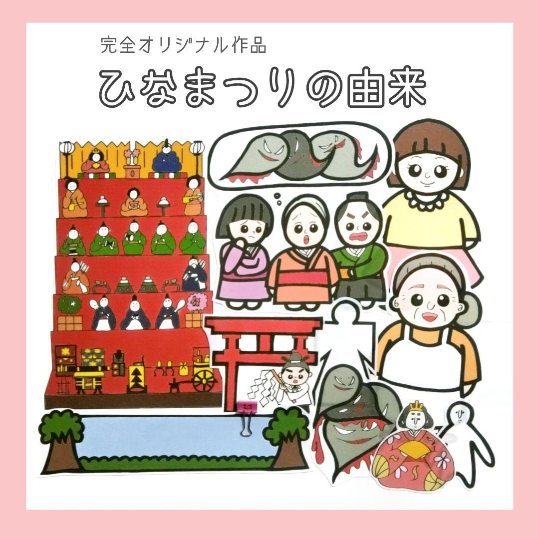 choooboo ⇦他の投稿はこちらから! ひな祭りのパネルシアター🎎 こちらのパネルシアターの内容は、 ひな祭りの由来を話したり、 「うれしい ひなまつり」を歌いながら 雛人形を飾っていきます! 子どもも参加できるので楽しいと思います✨ ひな祭りの由来パネルシアターと。