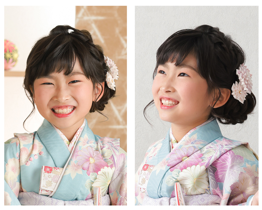 写真付き 7歳の七五三の髪型例ヘアセットする場所はどこ? 七五三写真のフォトスタジオ・写真館はらかんスタジオ。