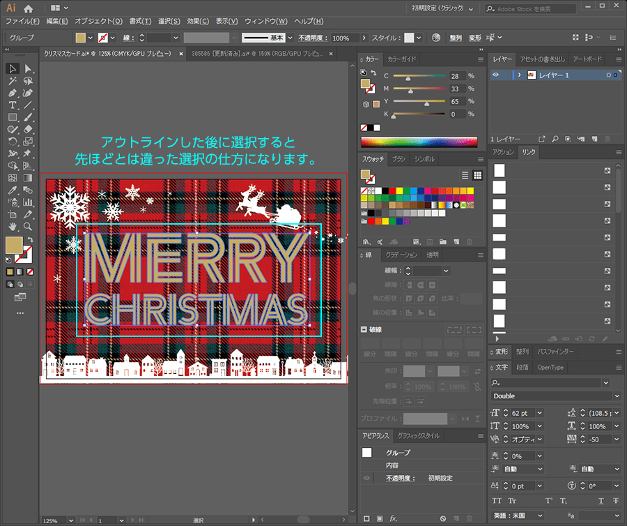 おしゃれなデザインのクリスマスカード・Wordでメッセージを簡単入力!手書き作成もOK・ イラストボックス「プレミアム」テンプレート。