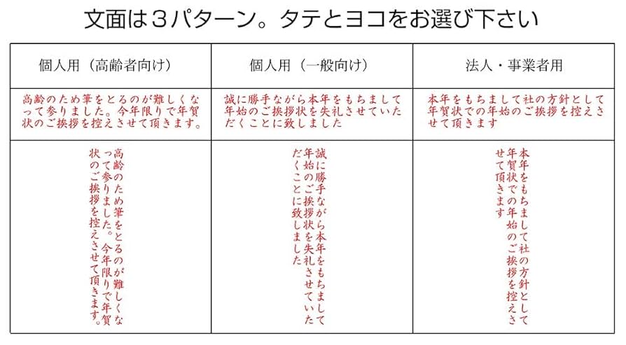 Amazon.co.jp: 年賀状じまいゴム印 終活年賀状個人用2-タテ 誠に勝手ながら本年をもちまして年始のご挨拶状を失礼させていただくことに致しました: 文房具・オフィス用品。