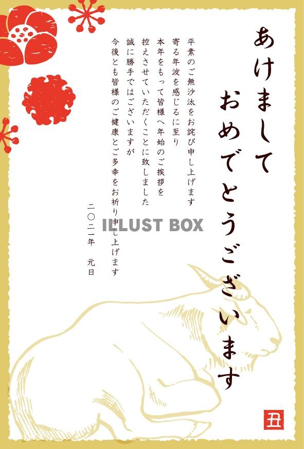 年賀状じまい用ハガキ 2021年・丑年 :イラスト無料。