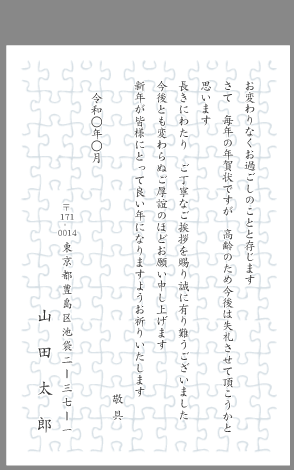 年賀状廃止・年賀状じまい お知らせはがき文例プリントメイト。