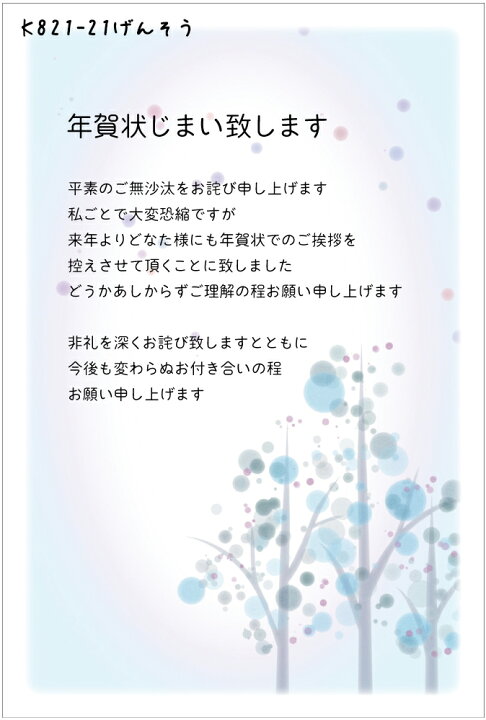 楽天市場 年賀状じまい はがき 10枚入 K821げんそう 年賀状での挨拶をやめる 文章印刷済み 官製はがき 切手付私製はがき 切手なし:メイドインたんたん。
