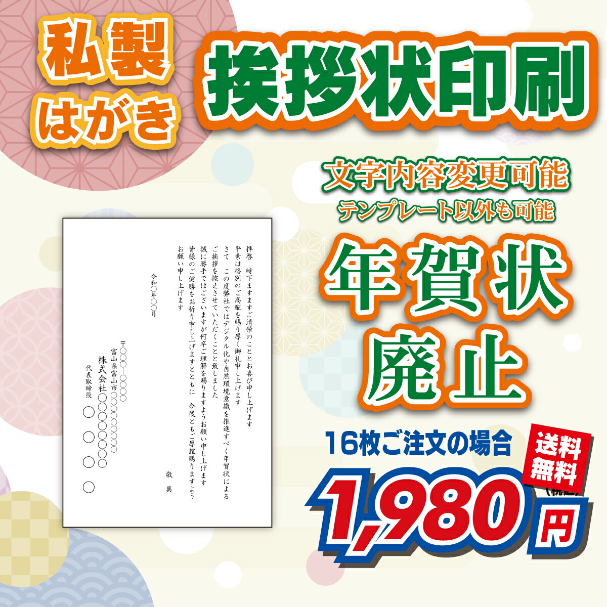 年賀状じまい 法人 の出し方・マナー 例文あり 挨拶状印刷通販 1枚から注文 短納期 封入封緘 投函 宛名印刷 自由文。