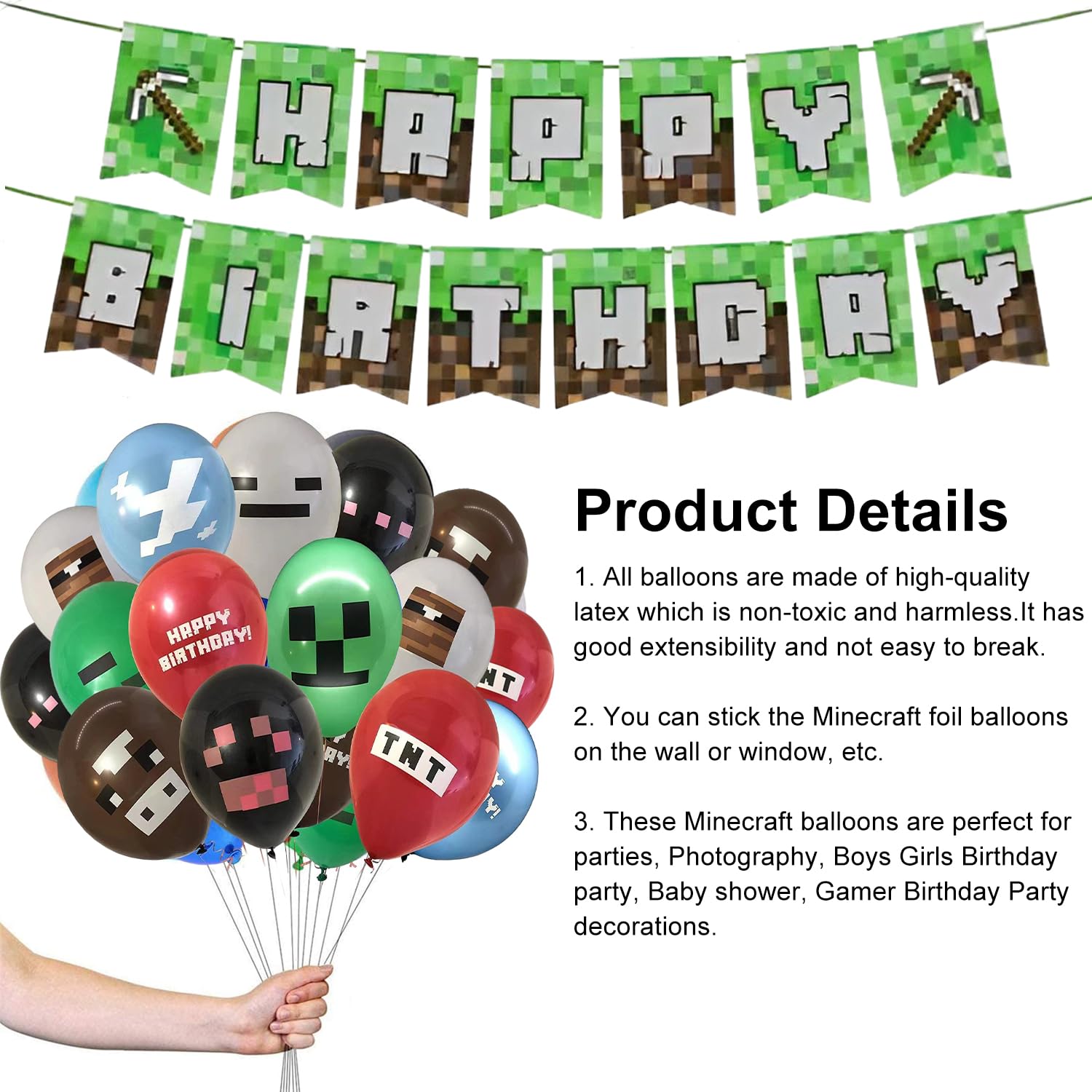 AmazonMinecraft マインクラフト の誕生日デコレーション 、ゲームテーマのパーティー用品、ハッピーバースデーバナー 18個 バルーン19個入り。男の子、女の子、誕生日、クリスマス、ティーパーティーの装飾に。風船・バルーンおもちゃ。