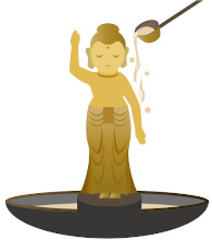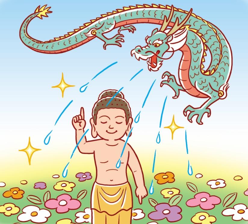 花祭りに甘茶香をお釈迦様の誕生日に灌ぐイラスト。