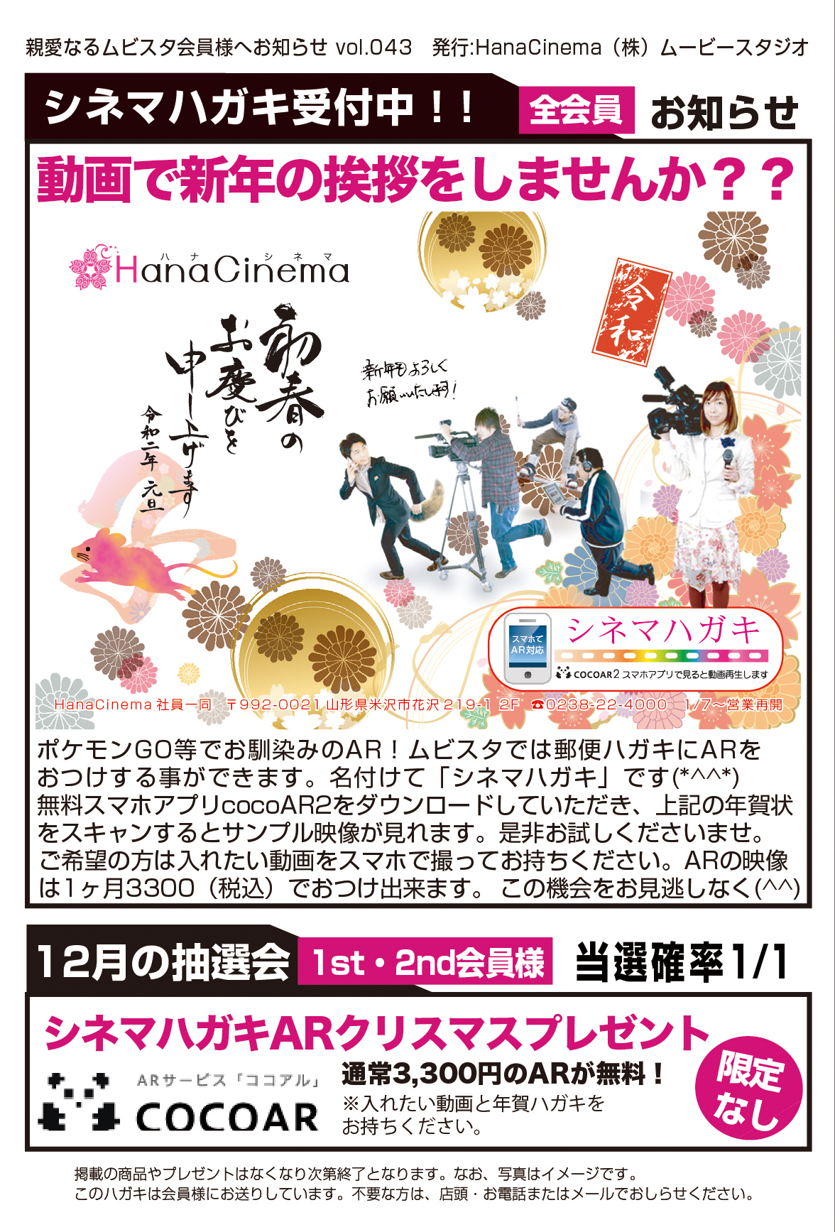 年賀状にARをつけれます!動画で新年の挨拶をしませんか??ムービースタジオ 山形県米沢市の映像制作無料相談所×映像ショールーム×動画制作専門店。