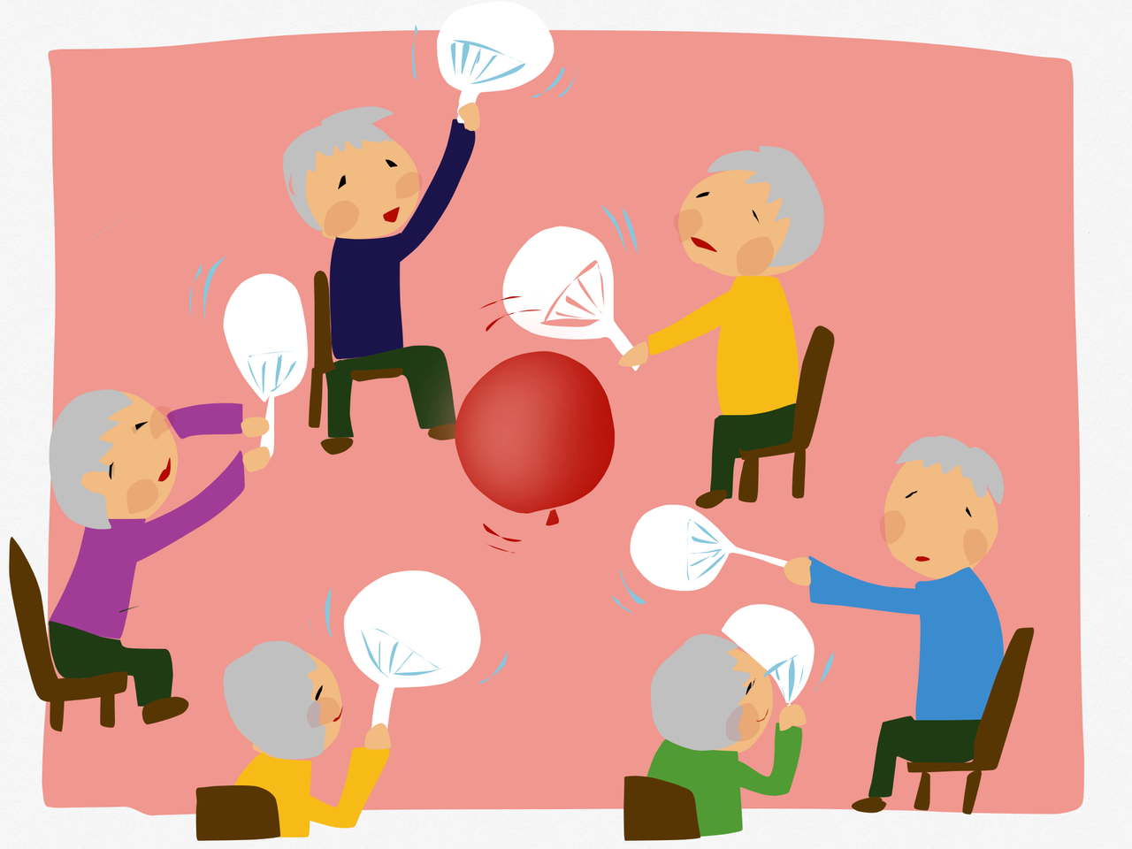 密にならない 風船とうちわを使った高齢者 在宅介護・デイサービス・老人ホーム レクリエーション・ゲーム『風船出し』新レクネタ。