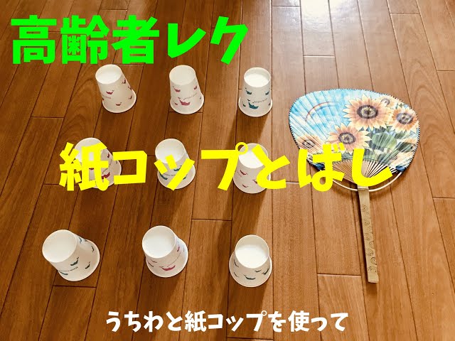 高齢者 デイサービス・老人ホーム 室内レクリエーション うちわを使って『紙コップとばしゲーム』 - YouTube。