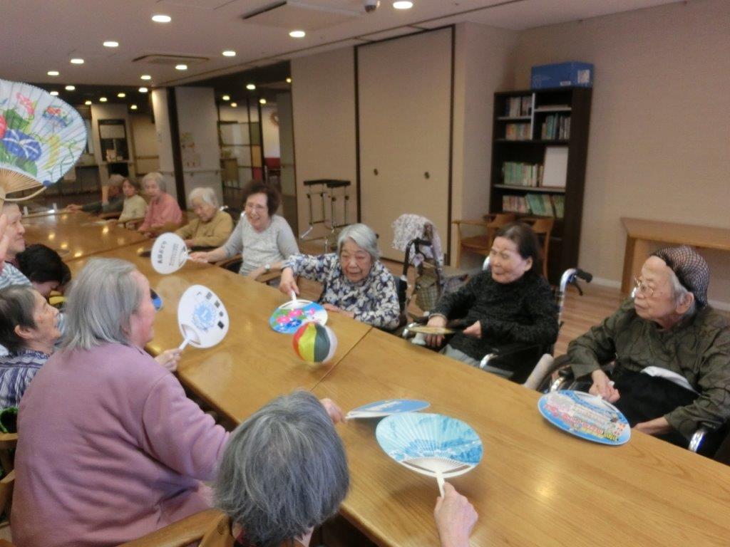 レクリエーション・うちわで遊ぼう🎈 : スマイルコート茨木豊川南。